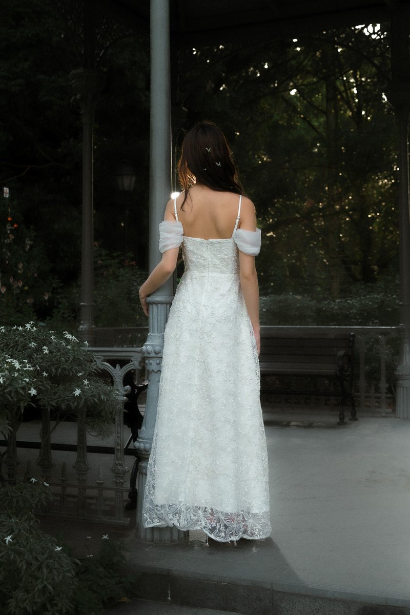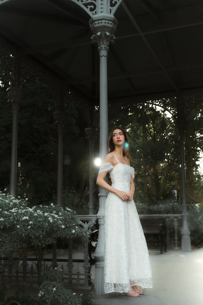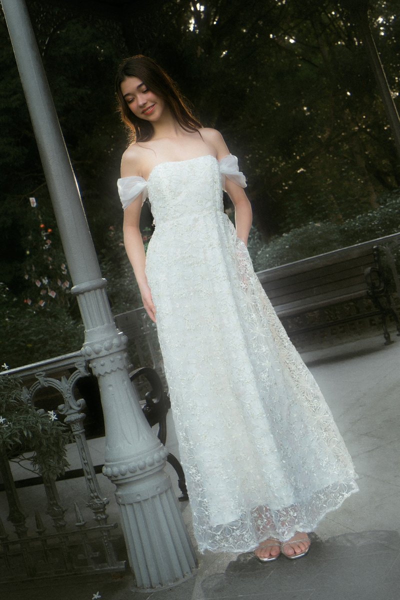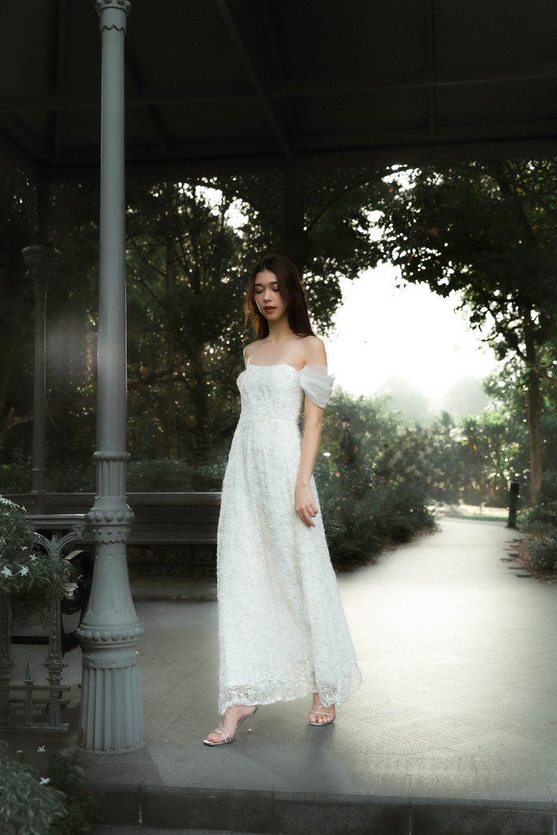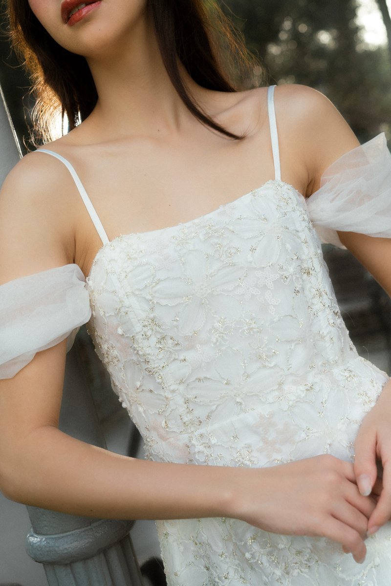 NOTE: Due to the delicate nature of embellished tulle fabrics, extra care should be taken when trying the dress. One should refrain from wearing it with accessories (e.g. jewellery or hand bags with sharp / metal edges) where the fabric can be easily hooked on.