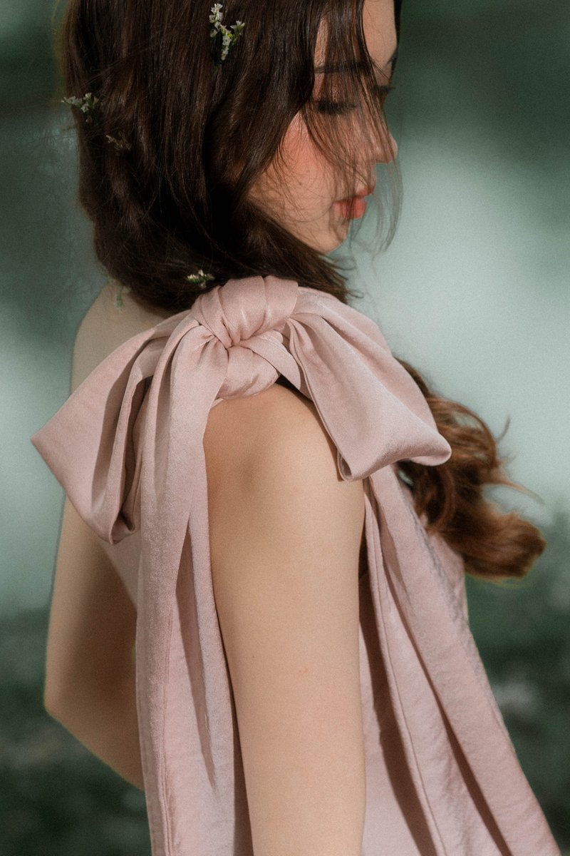 • Scarf can be styled multiple ways: Scarf to the back, Round the neck, Ribbon at the shoulders (thread through the shoulder loop), 1 side sleeve by attaching the scarf to inner button underneath the shoulder