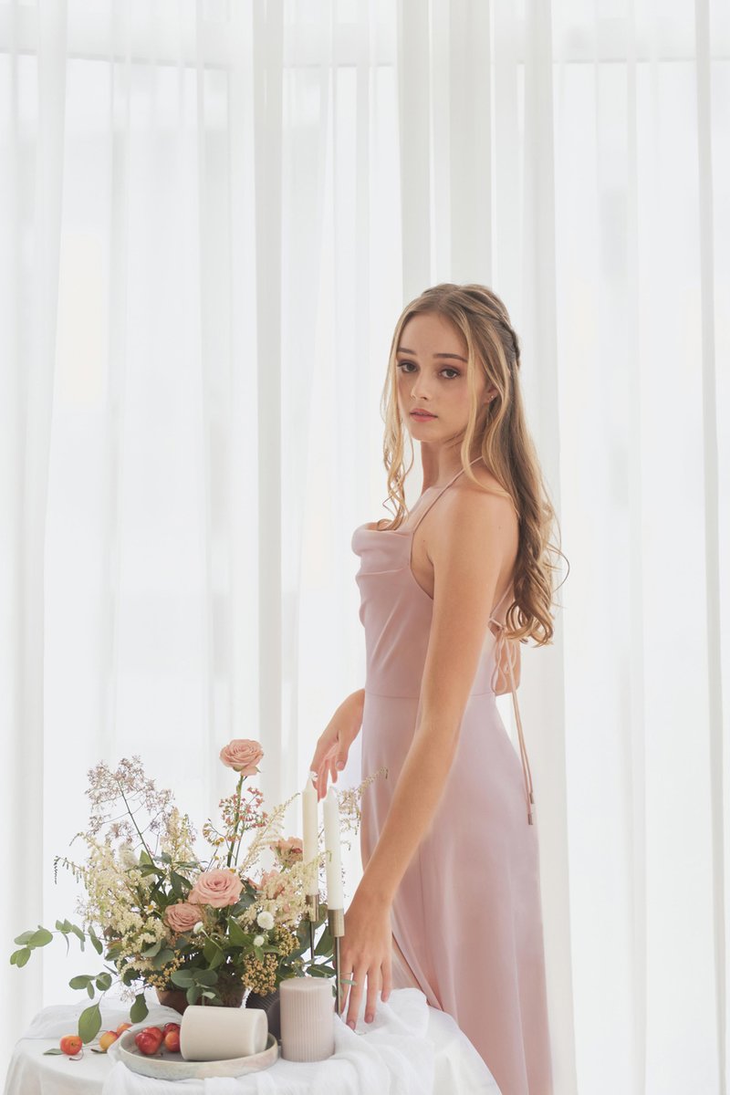 Certainly Ours Cowl Neck Dress (Blush Pink)